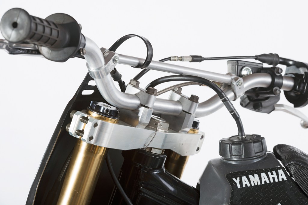 A motor váza talán az egyedüli, aminek a legtöbb köze van a széria változathoz, ám a segédváz már spéci komponens, full titánium és a pálya karakterisztikájához tetszőlegesen állítható a magassága. A futómű gyári Öhlins, hagyományos villával, kézzel gyártott villabefogókkal és himbával, minden a motoros igényéhez igazítva. A villaszög is teljesen eltér a gyári paraméterektől.