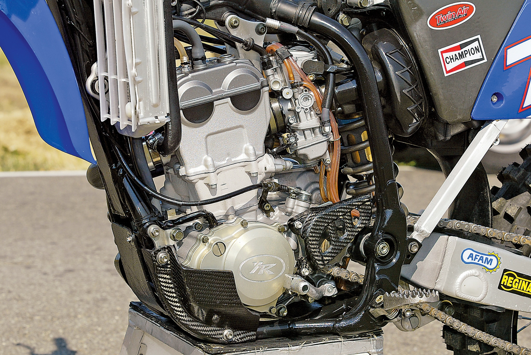 A 48 mm-es Kayaba gyári teleszkópokat és hátsó rugóstagot leszámítva Everts YZ250F-je olyan alkatrészekkel volt szerelve, amelyek szinte bárki számára elérhetőek – legalábbis Európában. Már az első körben egyértelművé vált, hogy ez egy kivételes motor. Bár a YZ450F lenyűgöző gép, a YZ250F egyenesen szerelem volt első látásra.